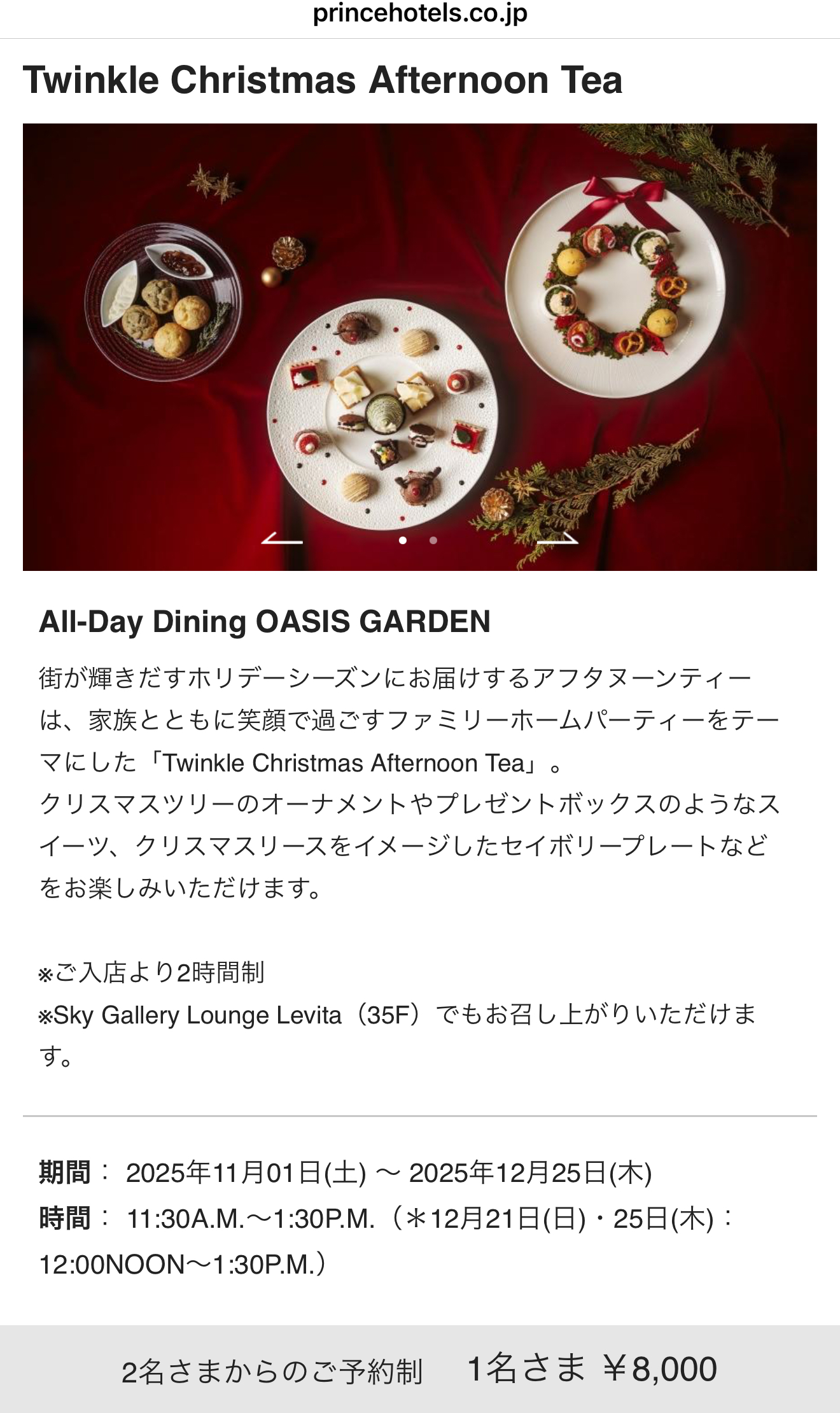 紀尾井町プリンスガーデンのアフタヌーンティーにご招待します